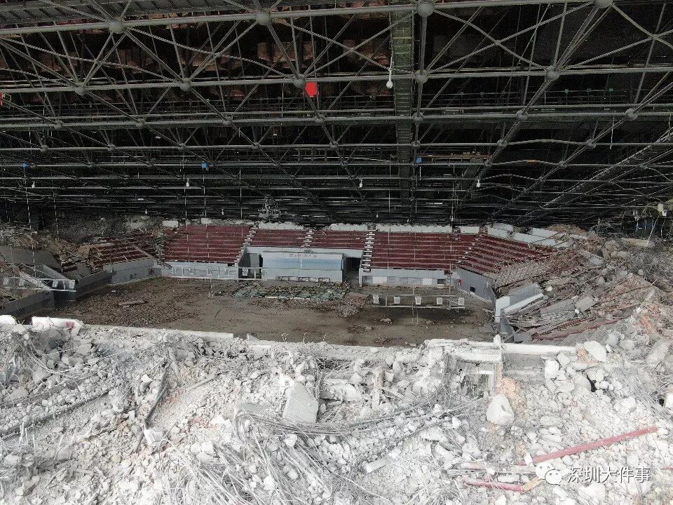 拆除中的深圳市體育館頂部坍塌!1人死亡,仍有2人被困
