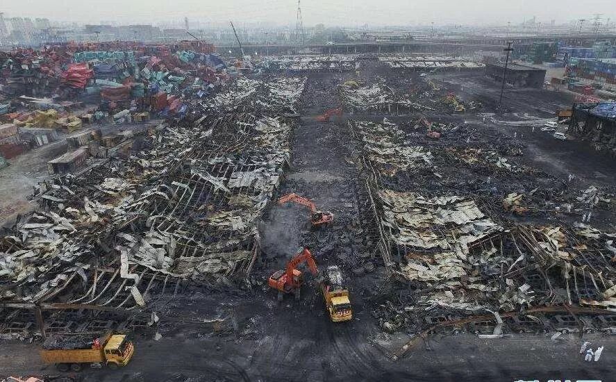 2015年8月12日,位于天津市濱海新區(qū)的瑞海公司危險(xiǎn)品倉(cāng)庫(kù)運(yùn)抵區(qū)起火,隨后發(fā)生兩次劇烈的爆炸。事故造成165人遇難,8人失蹤,798人受傷住院治療,304幢建筑物、12428輛商品汽車(chē)、7533個(gè)集裝箱受損,直接經(jīng)濟(jì)損失68.66億元人民幣。事故原因是瑞海公司危險(xiǎn)品倉(cāng)庫(kù)運(yùn)抵區(qū)南側(cè)集裝箱內(nèi)的硝化棉由于濕潤(rùn)劑散失出現(xiàn)局部干燥,在高溫(天氣) 等因素的作用下加速分解放熱,積熱自燃,引起相鄰集裝箱內(nèi)的硝化棉和其他危險(xiǎn)化學(xué)品長(zhǎng)時(shí)間大面積燃燒,導(dǎo)致堆放于運(yùn)抵區(qū)的硝酸銨等危險(xiǎn)化學(xué)品發(fā)生爆炸。