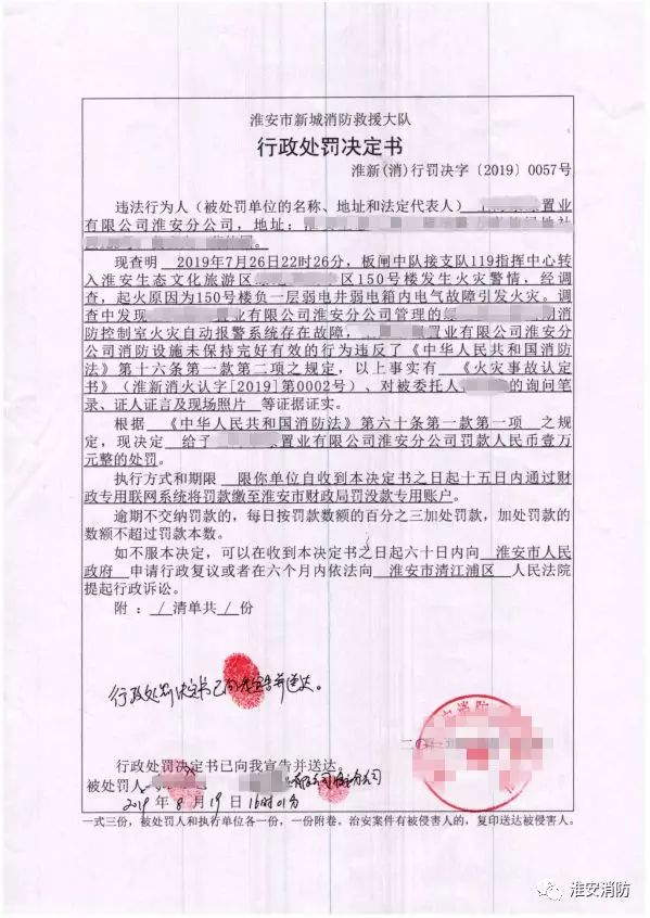 (3)處罰依據(jù):置業(yè)公司的行為違反了《中華人民共和國(guó)消防法》第16條1款2項(xiàng),依據(jù)《中華人民共和國(guó)消防法》第60條1款1項(xiàng)作出處罰決定。
