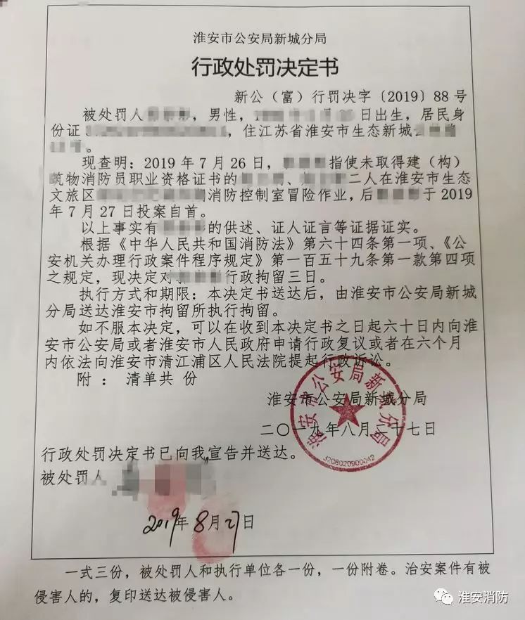 (3)處罰依據(jù):該行為違反《中華人民共和國(guó)消防法》第44條1款規(guī)定,依據(jù)《中華人民共和國(guó)消防法》第64條3項(xiàng)規(guī)定作出處罰決定。