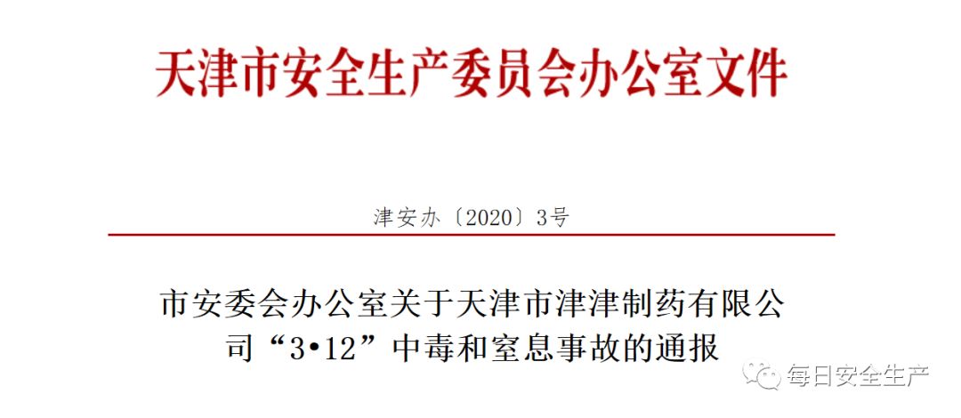 2020年3月12日9時11分左右,位于西青區(qū)的天津市津津制藥有限公司發(fā)生中毒和窒息事故,一名工人在進入合成氫化可的松車間不銹鋼水解釜內(nèi)拿取取樣器時暈倒,后另一人進入釜內(nèi)施救時也暈倒,搶救無效死亡,造成2人死亡。