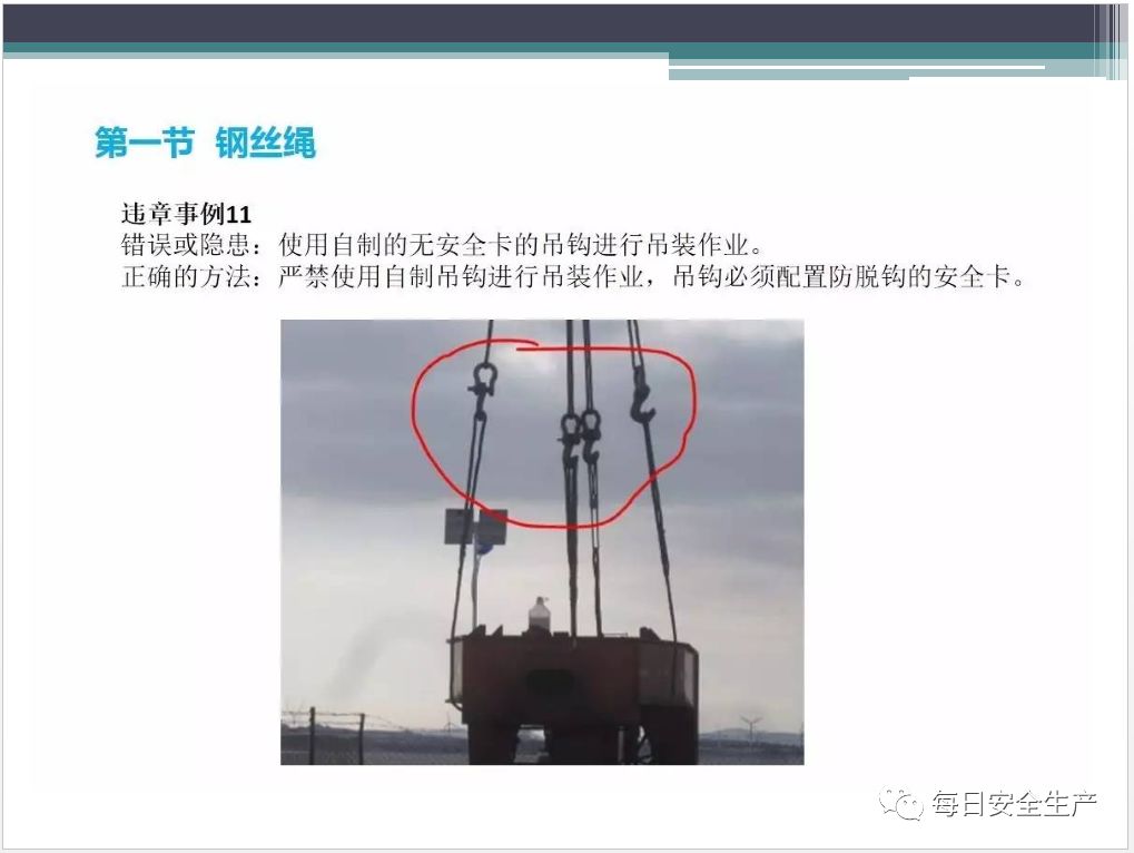 有些人為了省事,找根繩扣就用,殊不知這是別人扔的報廢的繩扣,有的受過內(nèi)傷,有的局部退過火,還有的讓電焊打過,而這些毛病和問題是不容易檢查出來的;還有的貪圖便宜購買非正式廠家生產(chǎn)的滑輪、吊環(huán)等不合格吊具,使工人作業(yè)時提心吊膽。為了確保施工安全,請不要用別人扔的繩扣,對損壞報廢的繩扣及時切斷,防止他人誤用;不要購買非正式廠家生產(chǎn)的吊具。