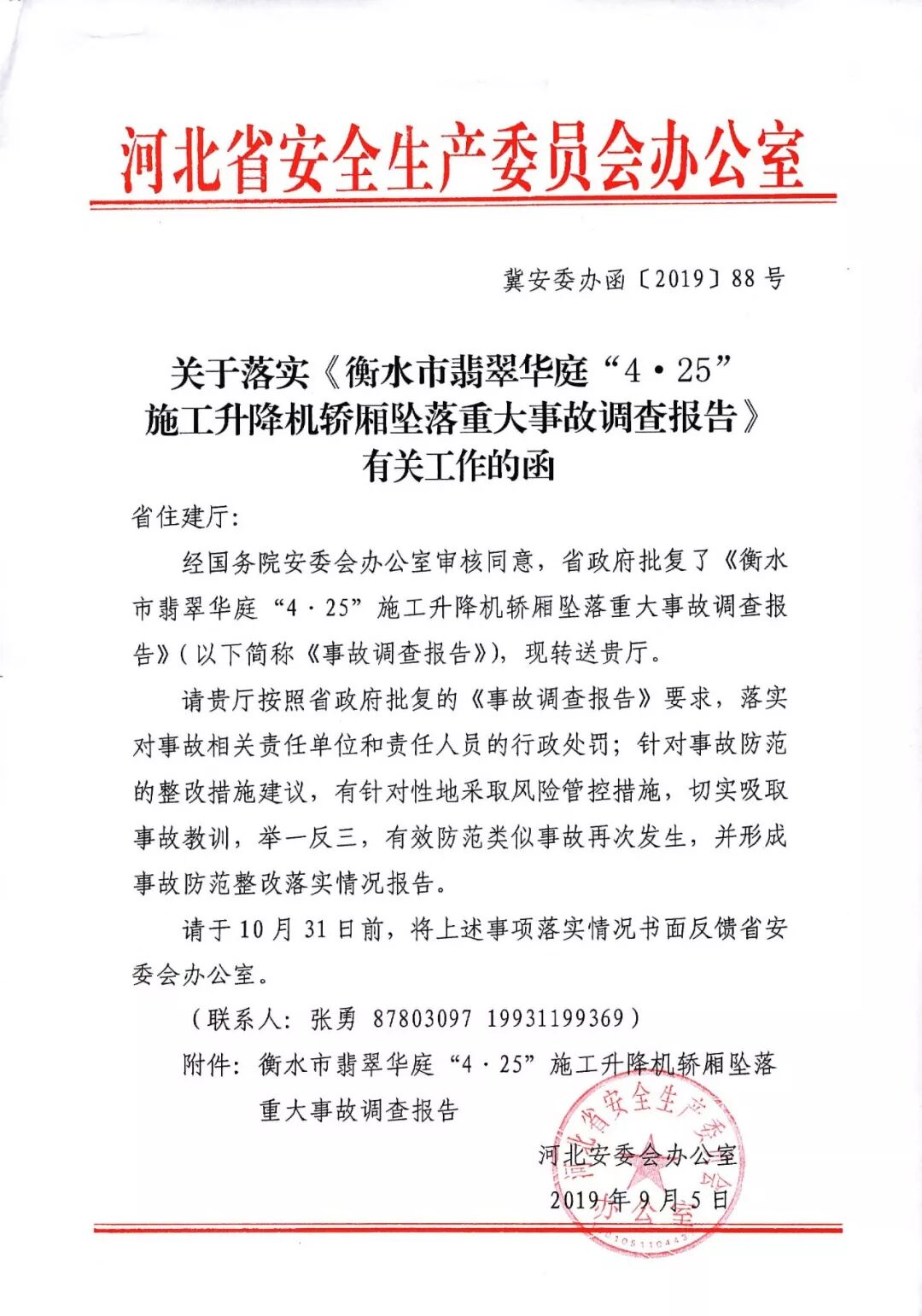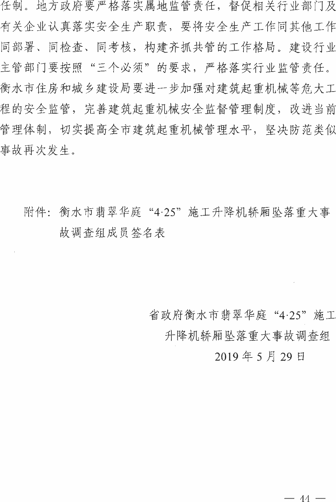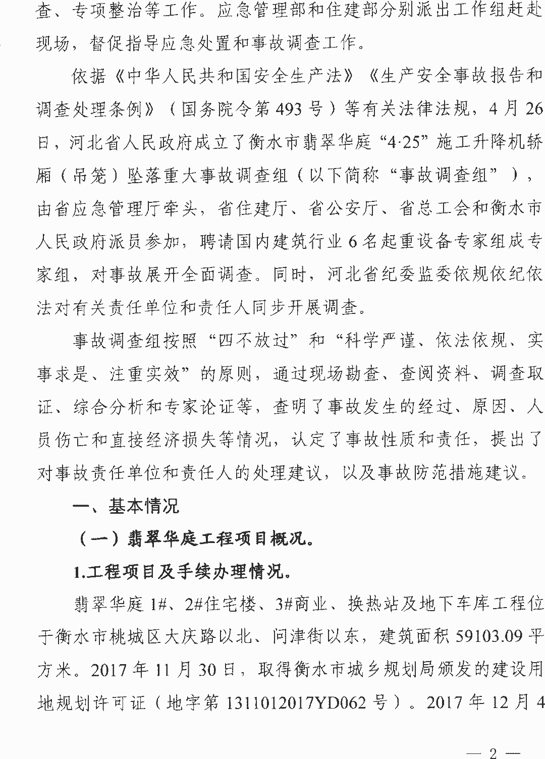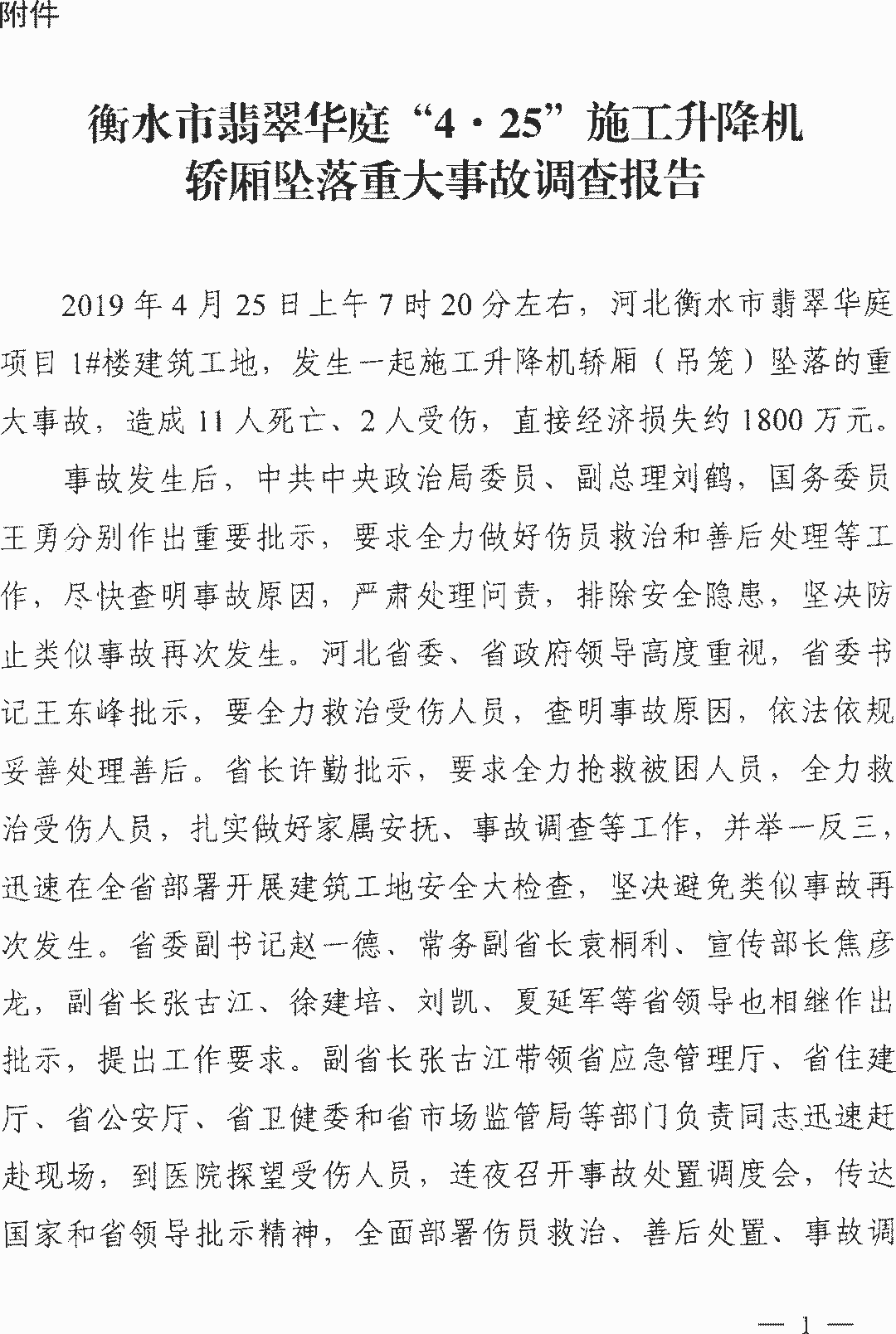 “4·25”衡水市翡翠華庭施工升降機(jī)橋廂墜落重大事故調(diào)查報(bào)告