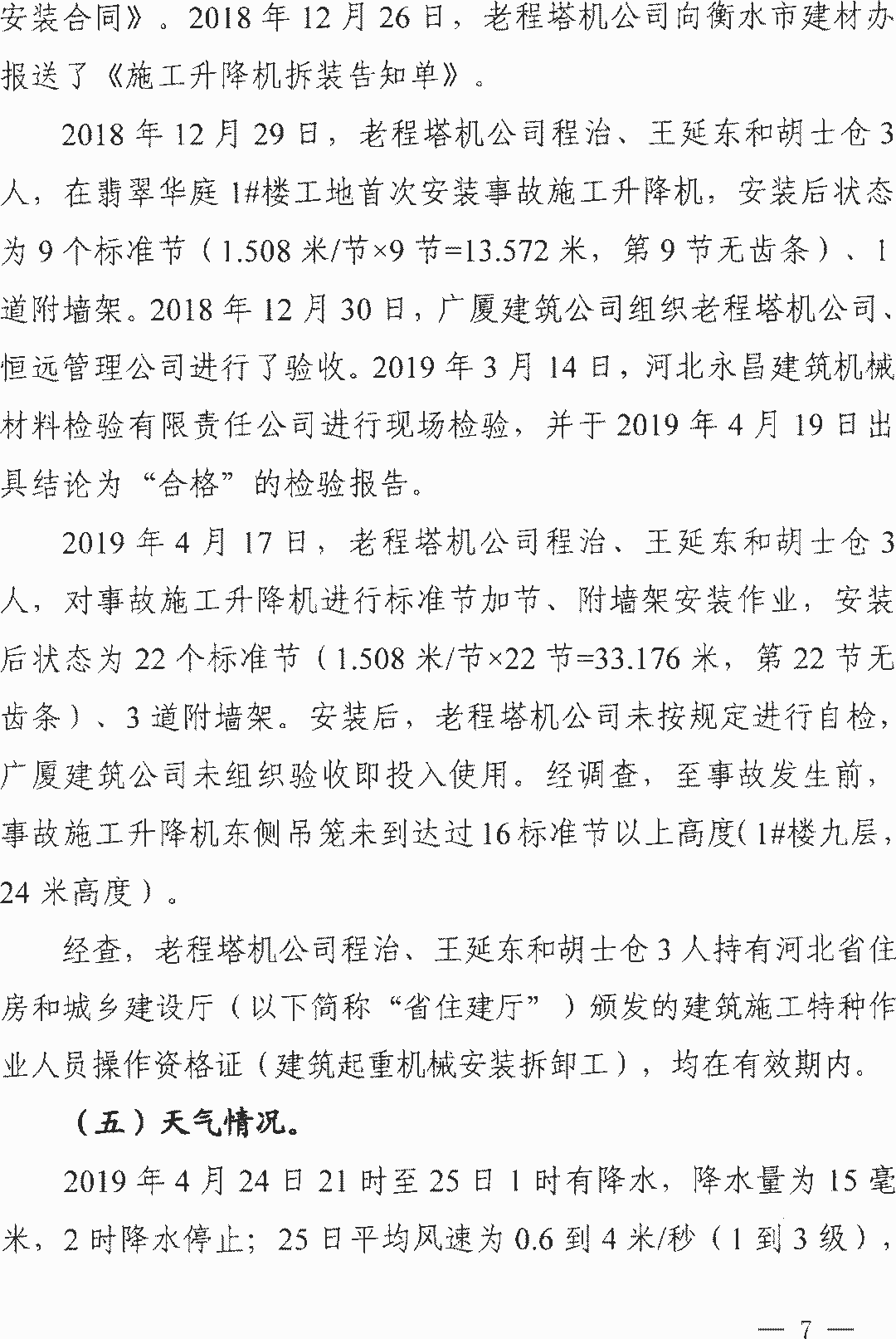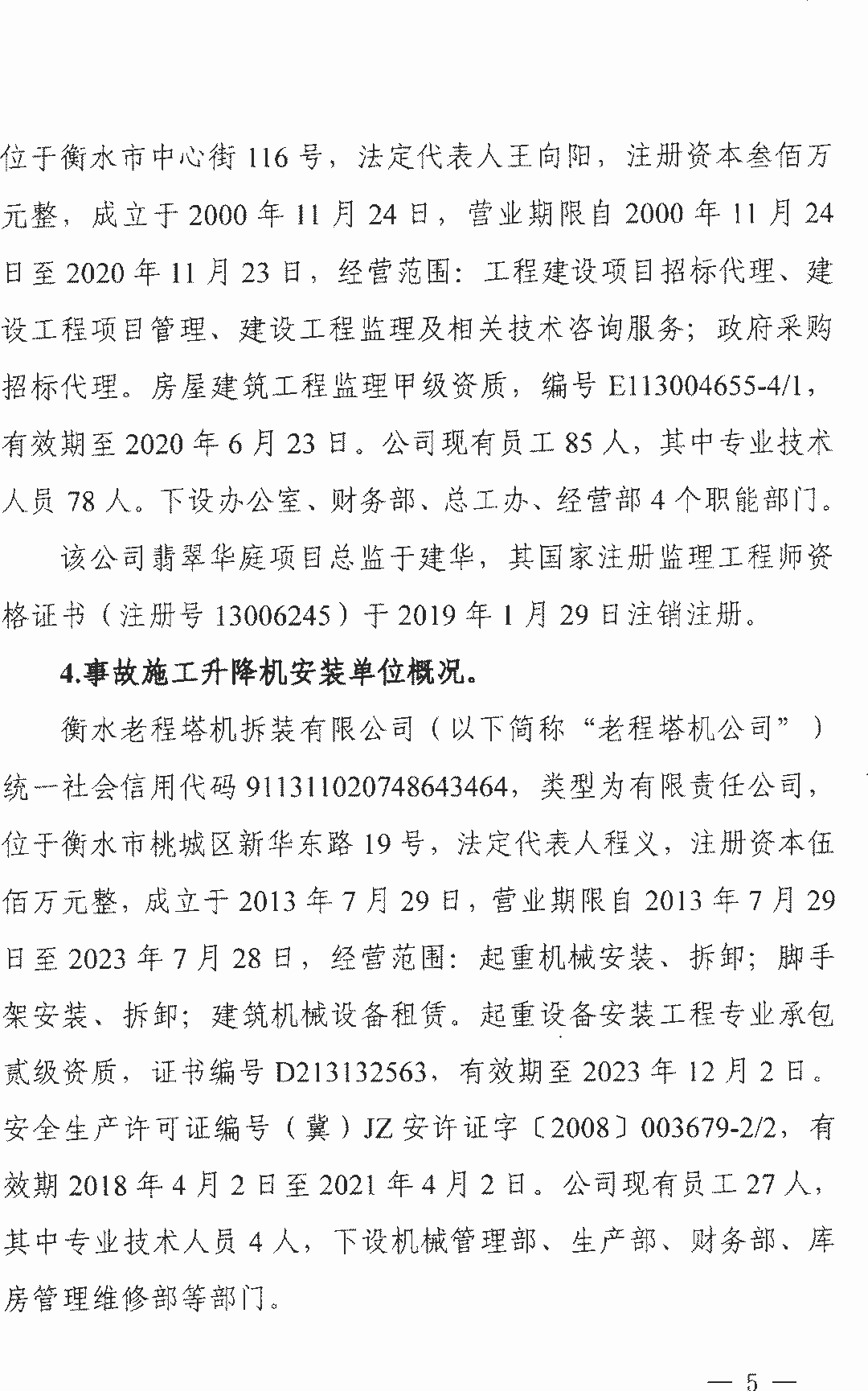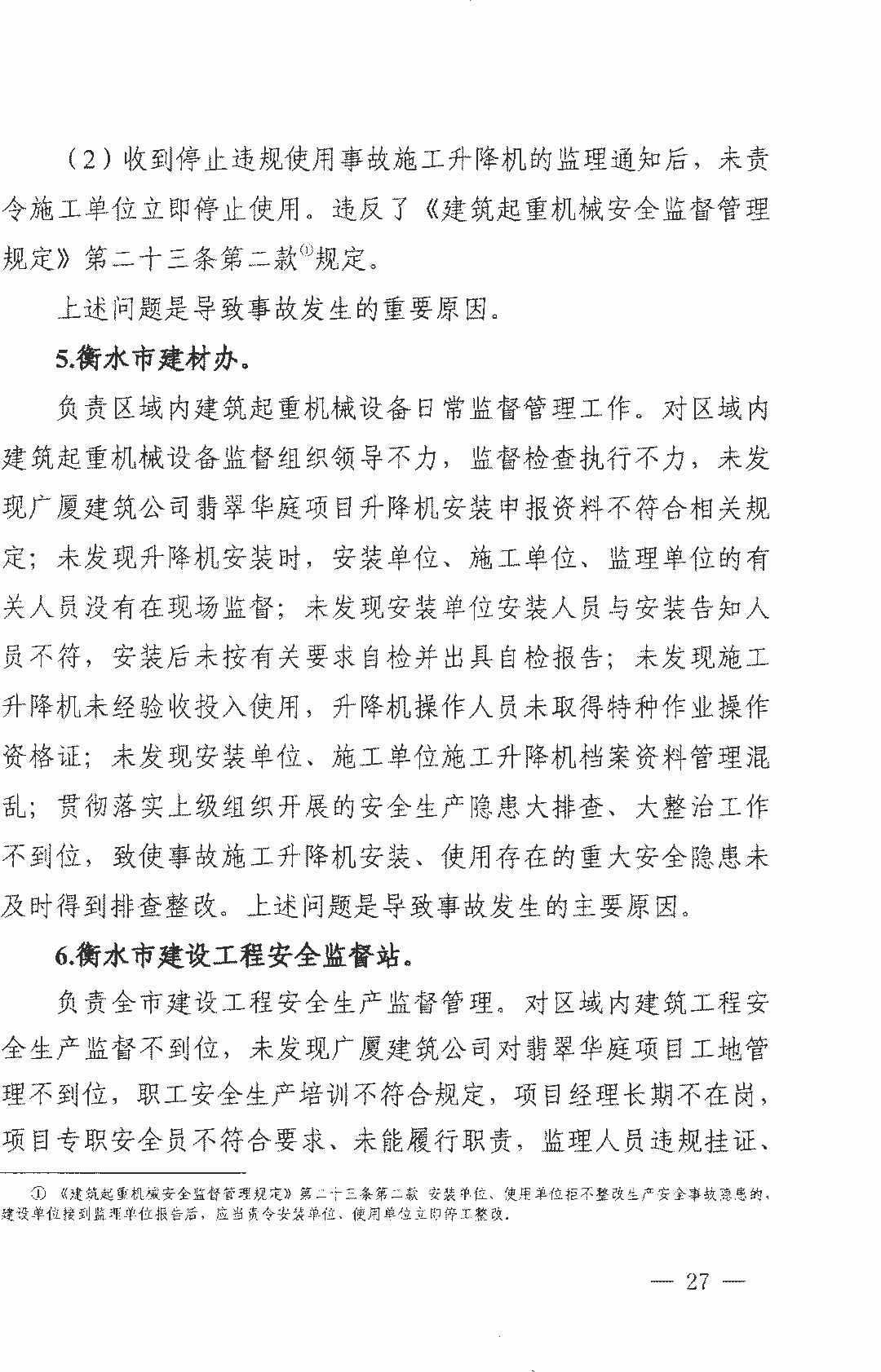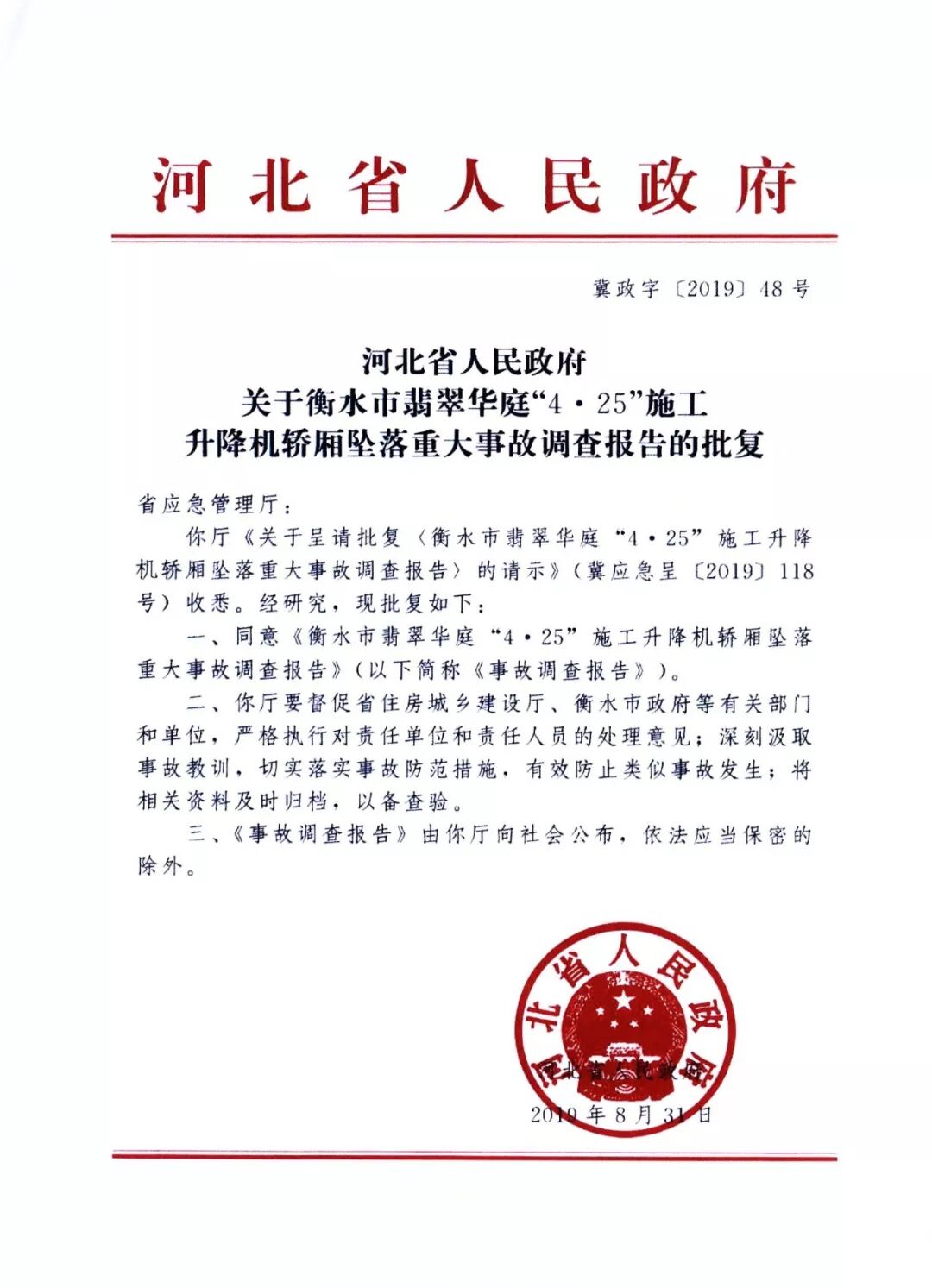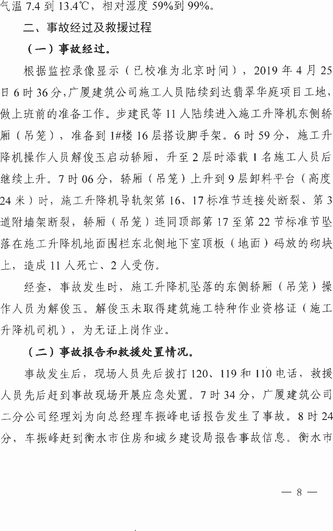 “4·25”衡水市翡翠華庭施工升降機(jī)橋廂墜落重大事故調(diào)查報(bào)告