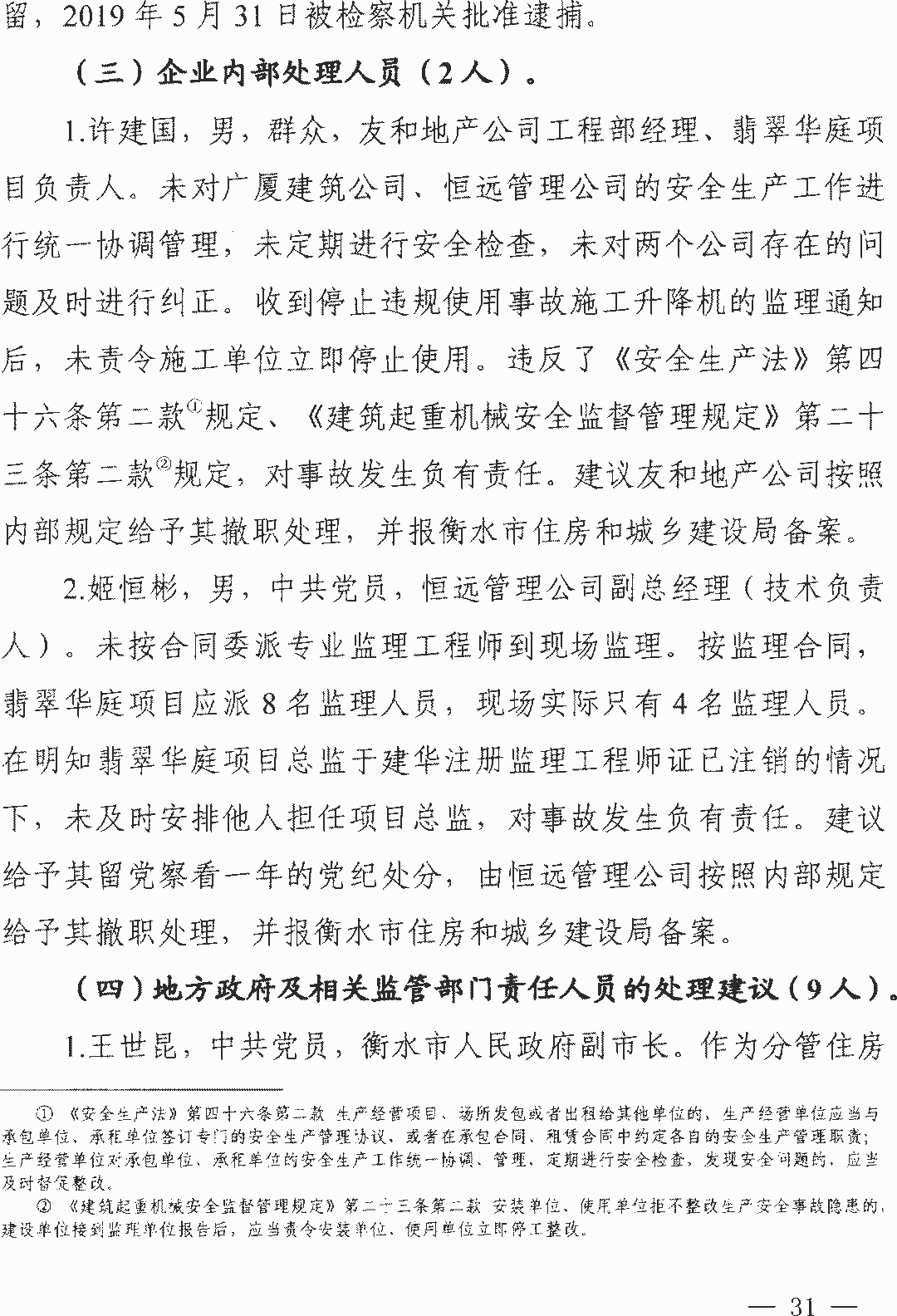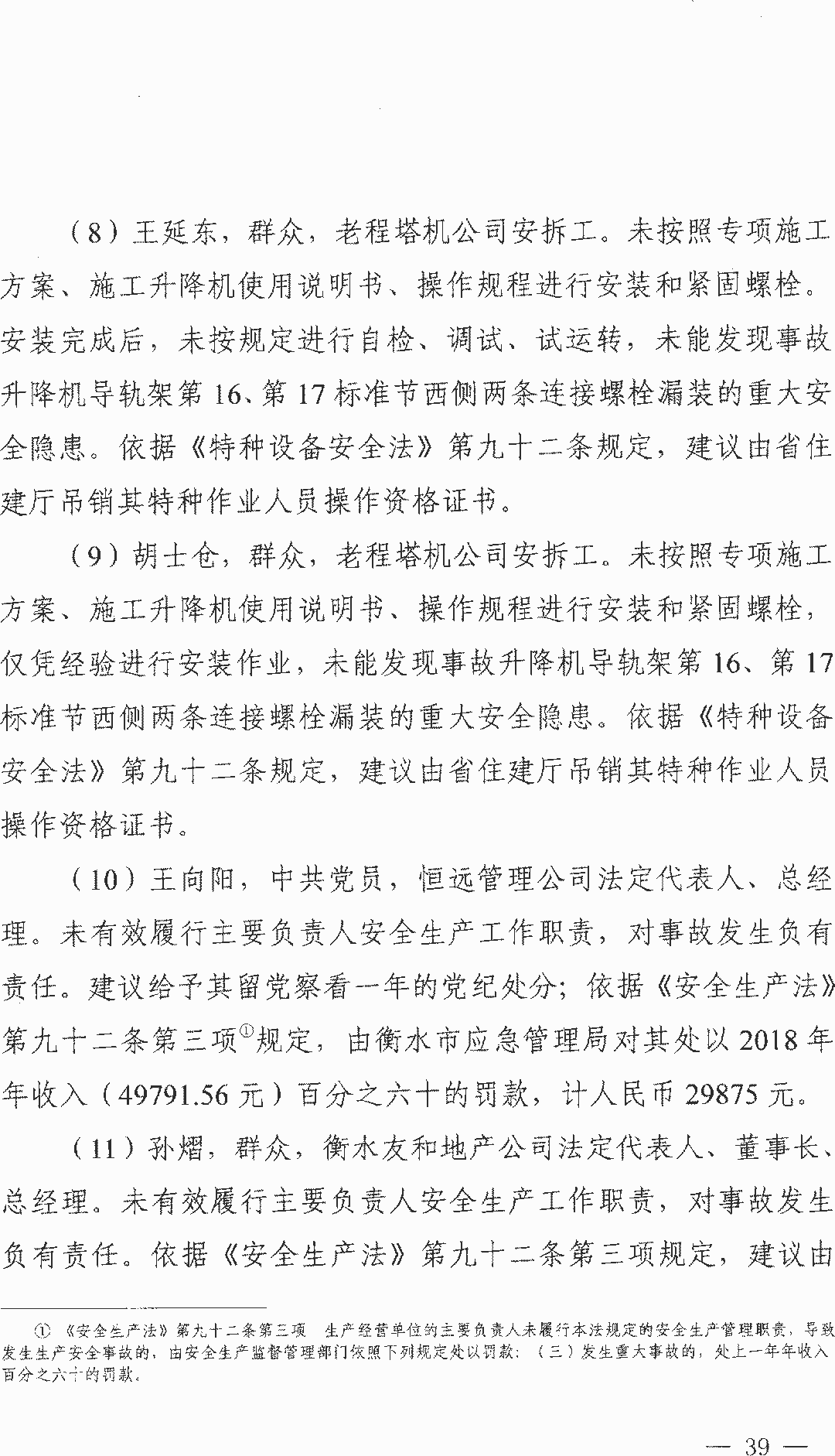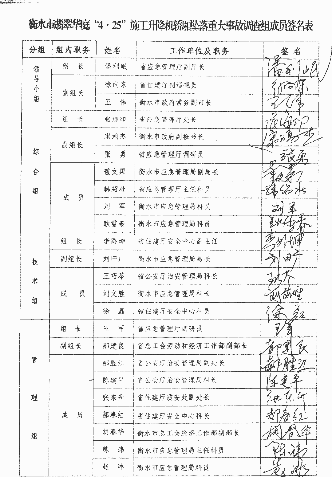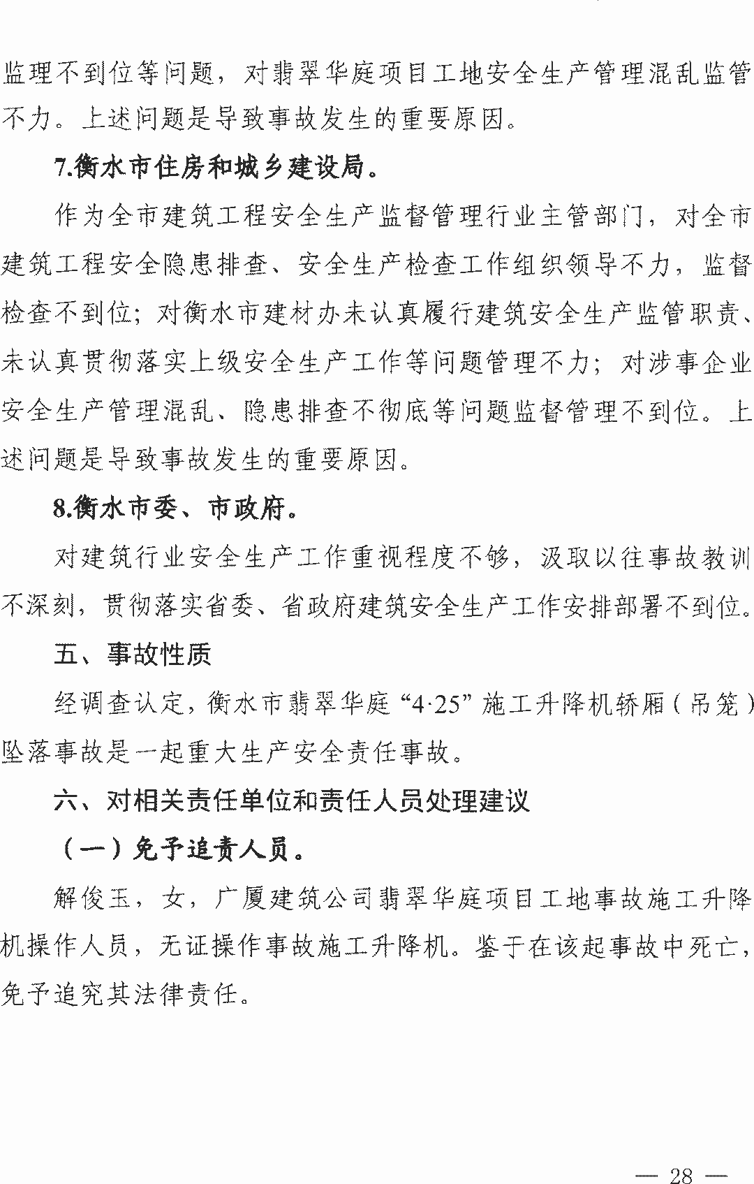 “4·25”衡水市翡翠華庭施工升降機(jī)橋廂墜落重大事故調(diào)查報(bào)告