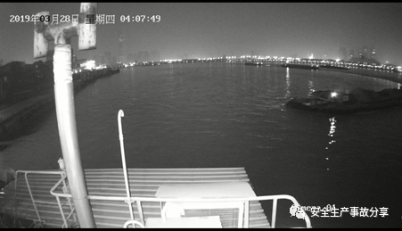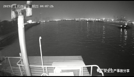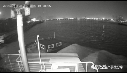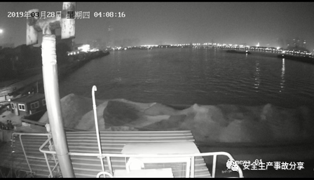 根據(jù)監(jiān)控視頻回放,確定本次事故碰撞時間為2019年3 月28日約0408時,碰撞地點坐標(biāo):31°9.3671'N ,121°27.5083'E,位于黃浦江陸軍部隊匯龍碼頭(躉船)。