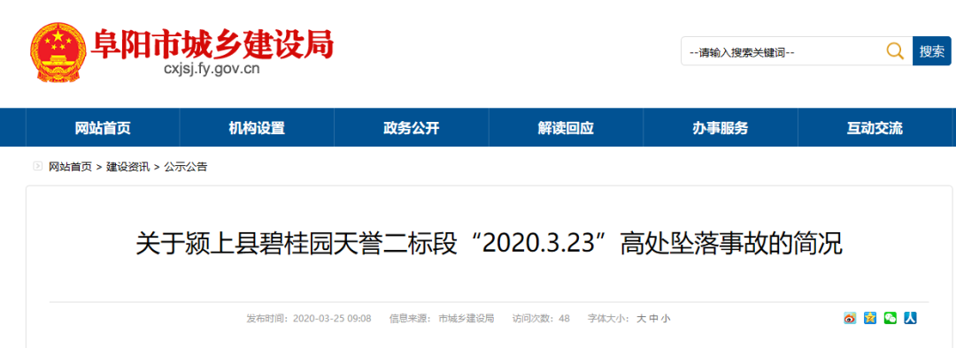 3月23日事故發(fā)生當(dāng)日,阜陽(yáng)市城鄉(xiāng)建設(shè)局發(fā)布事故警示通報(bào),對(duì)事故相關(guān)單位進(jìn)行了嚴(yán)肅處理。