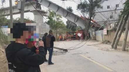 3月2日下午5點左右,福建福州火車南站附近的一處建筑工地,發(fā)生在建橋梁的梁體倒塌。倒塌梁體壓倒一個活動板房。