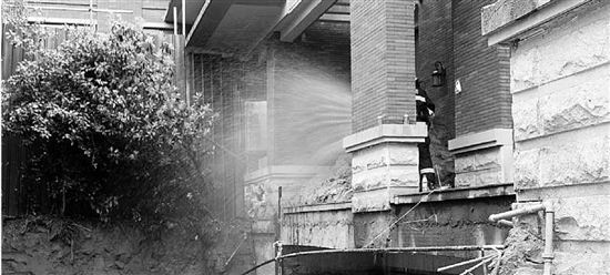 就在消防官兵拉著水帶去消火栓取水時(shí),新的問(wèn)題出現(xiàn)了?!跋浪ㄔ谝惶幓趬Ω浇鏊诰o貼著墻面,根本就沒(méi)辦法用?!睘榱瞬坏⒄`救援工作,消防官兵立即用器材對(duì)消火栓周邊墻壁進(jìn)行處置,留出足夠的空間供水帶取水。