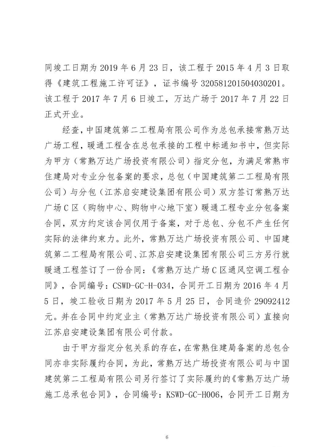 5.常熟萬達(dá)投資有限公司,違反《房屋建筑和市政基礎(chǔ)設(shè)施工程施工分包管理辦法》的規(guī)定,直接指定暖通工程施工分包單位,按照《建筑工程施工轉(zhuǎn)包違法分包等違法行為認(rèn)定查處管理辦法(試行)》第五條規(guī)定屬違法發(fā)包行為,建議住建部門依據(jù)《建筑工程施工轉(zhuǎn)包違法分包等違法行為認(rèn)定查處管理辦法(試行)》第十五條要求,將常熟萬達(dá)投資有限公司的不良行為記入信用檔案。