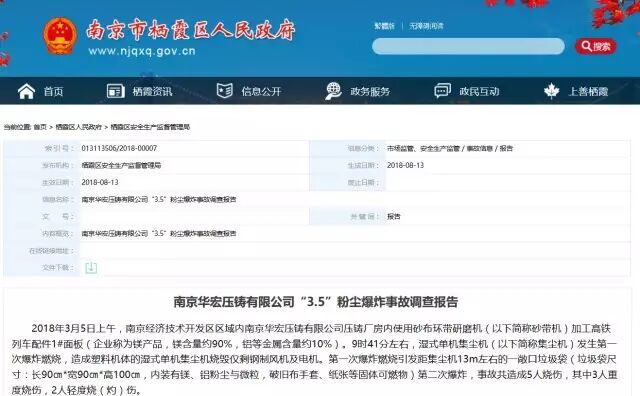南京華宏壓鑄3.5粉塵爆炸事故調(diào)查報告