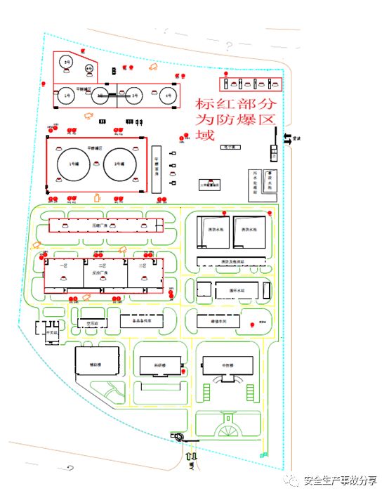 公司廠區(qū)分為廠前區(qū)(即辦公區(qū))和生產(chǎn)區(qū),廠前區(qū)自東向西依次為綜合樓(行政辦公)、科研樓(技術(shù)研發(fā))和輔助樓(食堂和值班室)。生產(chǎn)區(qū)以應(yīng)急疏散圖位置為基準(zhǔn)點,主路右側(cè)(東側(cè)),自南向北依次為維修車間(戊類)、循環(huán)處理裝置、消防泵站、消防水池、氣瓶充裝站、商務(wù)地磅、甲醚槽車充裝臺(防爆區(qū)域);以應(yīng)急疏散圖位置為基準(zhǔn)點,主路左側(cè)(西側(cè)),自南向北依次為備品備件庫(丁類)、反應(yīng)廠房(分為一區(qū)、二區(qū)和三區(qū))、壓縮廠房、甲醇罐區(qū)、甲醚罐區(qū)等;生產(chǎn)區(qū)和廠前區(qū)由保修車間、備品備件庫、空壓站、綠化帶進行分隔,詳見久泰公司平面圖。