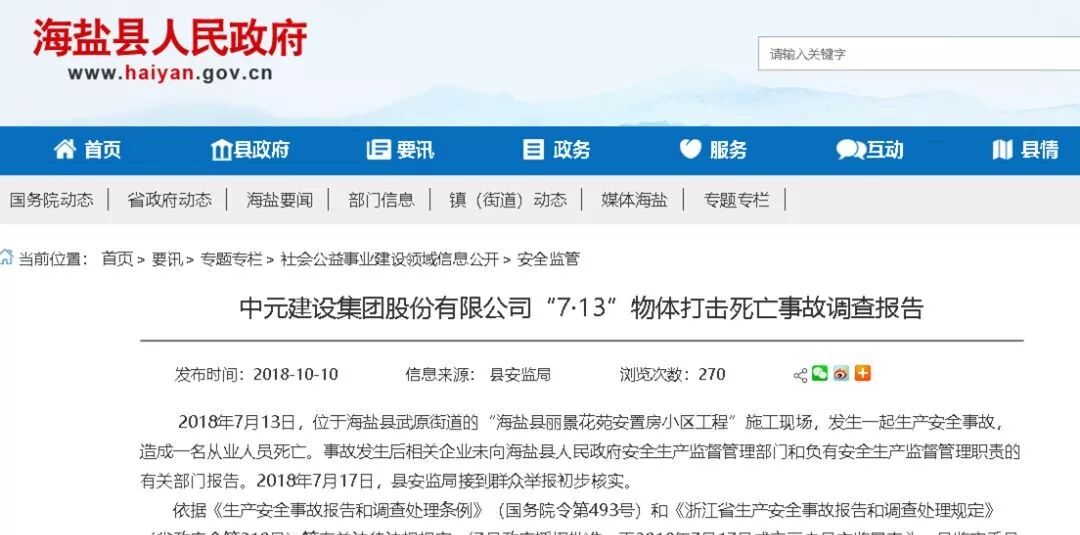 2018年7月13日,位于海鹽縣武原街道的“海鹽縣麗景花苑安置房小區(qū)工程”施工現(xiàn)場,發(fā)生一起生產(chǎn)安全事故,造成一名從業(yè)人員死亡。事故發(fā)生后相關(guān)企業(yè)未向海鹽縣人民政府安全生產(chǎn)監(jiān)督管理部門和負(fù)有安全生產(chǎn)監(jiān)督管理職責(zé)的有關(guān)部門報(bào)告。2018年7月17日,縣安監(jiān)局接到群眾舉報(bào)初步核實(shí)。