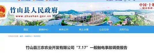 竹山縣三農(nóng)農(nóng)業(yè)開發(fā)有限公司“7.17”一般觸電事故調(diào)查報告