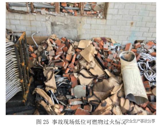 導(dǎo)致 B 廠房外墻多處受損(圖 20);圖 18 B 廠房臨時(shí)建筑外墻被爆炸及磚頭散落情況嘉定區(qū)滬宜公路 5958 號(hào)其他爆炸事故事故原因技術(shù)分析報(bào)告華東理工大學(xué)安全工程咨詢中心 17圖 19 B 廠房臨時(shí)建筑外墻爆炸(沖擊波/磚頭)致使 B 廠房窗戶受損變形的情況圖 20 B 廠房臨時(shí)建筑外墻爆炸(磚頭)致使 B 廠房墻體多處受損的情況嘉定區(qū)滬宜公路 5958 號(hào)其他爆炸事故事故原因技術(shù)分析報(bào)告華東理工大學(xué)安全工程咨詢中心 18B、火災(zāi)痕跡的取證事故現(xiàn)場發(fā)生過火災(zāi)的判斷,既可以從受傷人員的傷害原因得到證實(shí),可以從上述爆炸痕跡取證照片中,獲得此次事故曾經(jīng)發(fā)生過火災(zāi)的信息。此處,再列舉三張取證照片,分別是事故單位暫存區(qū)過火照片(圖 21)、事故車間過火照片(圖 22)和 B 廠房臨時(shí)建筑爆炸現(xiàn)場過火照片(圖 23)。