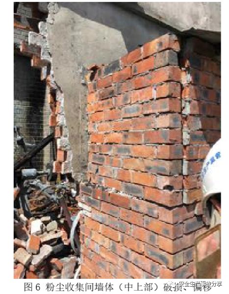 圖 5 暫存區(qū)處屋頂和墻體坍塌情況-2②粉塵收集間墻體發(fā)生偏移(圖 6);