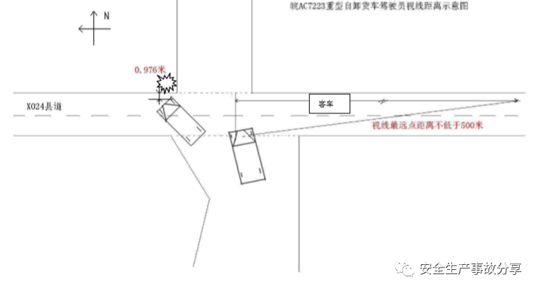 事故現(xiàn)場(chǎng)位于 S346 壽縣炎劉鎮(zhèn)連塘路口處,事故路段為不規(guī)則四支分叉路口。該路口無(wú)交通信號(hào)燈控制,路口北側(cè)邊緣處設(shè)臵隔離樁,路口西南角及東北角各設(shè)臵爆閃燈一臺(tái),路口南側(cè)設(shè)臵減速帶。S346 呈東西走向,東往壽縣炎劉鎮(zhèn)方向,西往壽縣茶庵鎮(zhèn)方向,瀝青路面,全寬 9 米,道路為機(jī)非混合道路,雙向兩車(chē)道,施劃中心黃虛線(xiàn),兩邊白實(shí)線(xiàn),路面完好,潮濕。道路南側(cè)為民宅,北側(cè)為水渠。事發(fā)時(shí)皖 NF0962 號(hào)中型普通客車(chē)在該路由東向西行駛。向南道路為 Y067 鄉(xiāng)道,通向新橋國(guó)際產(chǎn)業(yè)園,水泥路面,路口處寬 15.5 米,道路寬 6 米,道路兩側(cè)為農(nóng)田。事發(fā)時(shí)皖 AC7223 號(hào)重型自卸貨車(chē)在該路口由南向西上坡左轉(zhuǎn)彎。向北道路通向炎劉鎮(zhèn)李橋村,由污水過(guò)路橋連接北側(cè)水泥路面,路口處寬 10.94 米,路面寬 6 米,道路兩側(cè)是農(nóng)田。過(guò)路橋下面為水渠,橋東為過(guò)水涵洞,涵洞下穿 S346,水渠連接涵洞的河溝部分寬 5.9 米,高 3.9 米,坡長(zhǎng) 8.36 米,事故客車(chē)墜入該河溝,事發(fā)時(shí)該河溝水量很少。