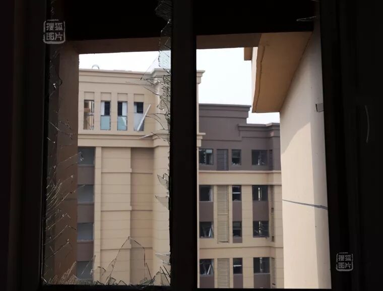周圍居民樓遭爆炸重創(chuàng)后的慘烈景象