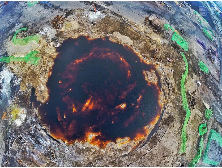 2.水環(huán)境污染情況。本次事故主要對(duì)距爆炸中心周邊約2.3公里范圍內(nèi)的水體(東側(cè)北段起吉運(yùn)東路、中段起北港東三路、南段起北港路南段,西至海濱高速;南起京門大道、北港路、新港六號(hào)路一線,北至東排明渠北段)造成污染,主要污染物為氰化物。事故現(xiàn)場(chǎng)兩個(gè)爆坑內(nèi)的積水嚴(yán)重污染;散落的化學(xué)品和爆炸產(chǎn)生的二次污染物隨消防用水、洗消水和雨水形成的地表徑流匯至地表積水區(qū),大部分進(jìn)入周邊地下管網(wǎng),對(duì)相關(guān)水體形成污染;爆炸濺落的化學(xué)品造成部分明渠河段和毗鄰小區(qū)內(nèi)積水坑存水污染。8月17日對(duì)爆坑積水的檢測(cè)結(jié)果表明,呈強(qiáng)堿性,氰化物濃度高達(dá)421毫克/升。