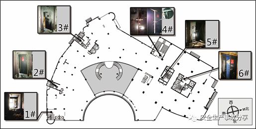 4層共有5個疏散通道(按圖2.6排序編號)?;馂?zāi)發(fā)生時,1號疏散通道樓梯間防火門處于關(guān)閉狀態(tài),可正常開啟,上方固定亮子窗的防火玻璃缺失[17];2號樓梯間在4層未設(shè)開口[18];3號疏散通道樓梯間前室兩側(cè)防火門均處于關(guān)閉狀態(tài),可正常開啟;4號疏散通道樓梯間設(shè)有2扇防火門,北側(cè)防火門處于敞開狀態(tài)[19],南側(cè)防火門處于關(guān)閉狀態(tài),可正常開啟;5號、6號疏散通道樓梯間前室兩側(cè)防火門均處于關(guān)閉狀態(tài),可正常開啟。