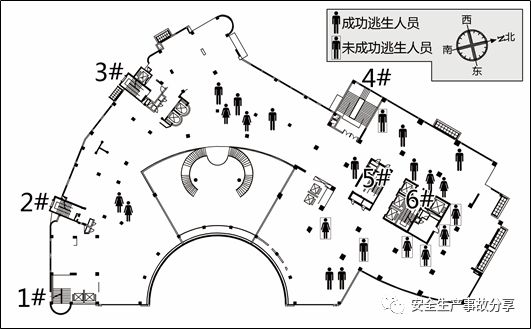 2.亡人樓層疏散通道情況。事故造成的人員傷亡主要集中在2層和4層。經(jīng)現(xiàn)場勘查: