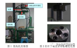 事發(fā)設(shè)備是佛山市鵬旺工業(yè)皮帶有限公司生產(chǎn)車間的繞線機(jī),該繞線機(jī)機(jī)械部份主要由底板、頂板、活動(dòng)板以及渦輪絲桿升降機(jī)(器)等部件組成,繞線機(jī)活動(dòng)板為重約 120 公斤的鋼板(長(zhǎng) 104cm、寬 63.5cm、厚度 5cm),渦輪絲桿升降機(jī)絲桿下端與活動(dòng)板通過螺紋連接,但沒有插銷或其它固定裝置。經(jīng)測(cè)試,升降機(jī)絲桿空載荷(未與活動(dòng)板連接)運(yùn)行時(shí)產(chǎn)生旋轉(zhuǎn);在未鎖緊情況下,啟動(dòng)繞線機(jī)向下按鈕時(shí),升降機(jī)絲桿逆時(shí)針旋轉(zhuǎn),絲桿從活動(dòng)板解鎖。