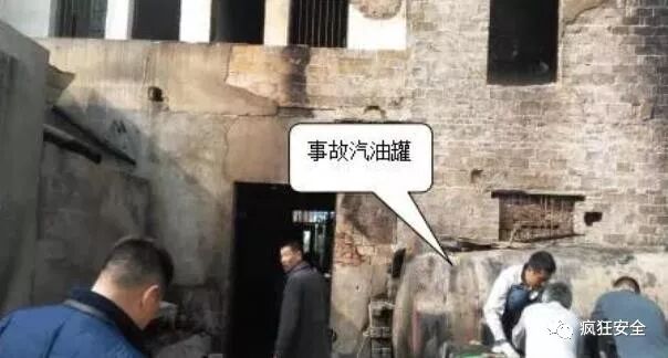李金彪加油點(diǎn)位于襄陽市東津新區(qū)東津鎮(zhèn)營口村七組(大埠街)李金彪家中,為李金彪農(nóng)村自建房,共三層,長15.2 m, 寬9.48 m,建筑總面積為432.3m2,單層面積為144.1 m2,一樓四間房為經(jīng)營門面,二樓、三樓為生活用房。該房位于218省道東津鎮(zhèn)至峪山方向右側(cè)。房屋坐南朝北,東側(cè)為夏師傅面館,西側(cè)為私人榨油作坊,北側(cè)為218省道大埠街,南側(cè)為李金彪自建房后院,該院長16.5m,寬15.2m,院內(nèi)面積250 m2。李金彪私自在后院東側(cè)搭建一罩棚,棚內(nèi)設(shè)置一個10噸汽油罐和一個5噸柴油罐;在后院西側(cè)另搭建一罩棚,棚內(nèi)設(shè)置一個15噸柴油罐;在房前大埠街臨街面搭建一罩棚,在棚內(nèi)設(shè)置一個10噸柴油儲罐。經(jīng)調(diào)查,事故發(fā)生前,院內(nèi)10噸汽油罐實(shí)際儲存穩(wěn)定輕烴及汽油9噸,5噸柴油罐實(shí)際儲存柴油4.5噸,15噸柴油罐為空罐,房前臨街面一個10噸柴油罐為空罐。