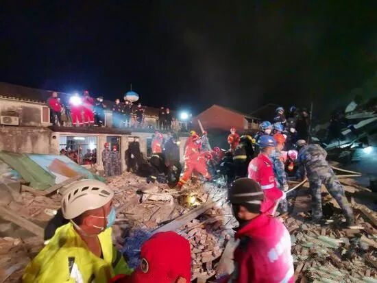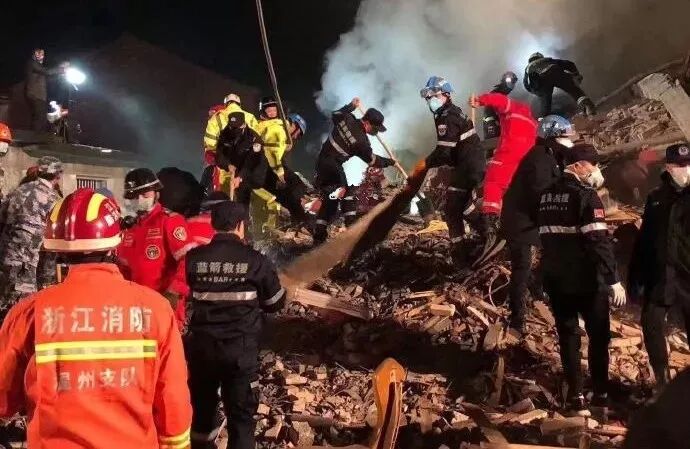 2020年2月4日23時51分,浙江省龍港市湖前片區(qū)鳳翔村李莊站19-20號2間2戶三層樓民房發(fā)生爆燃而坍塌,現(xiàn)場被困人員10人。經(jīng)過全力搜救,截至2月5日凌晨4時,救出8人(其中1人危重),現(xiàn)場搜救發(fā)現(xiàn)2具尸體。初步判斷,系煤氣爆燃引起民房意外坍塌。事故原因正在進(jìn)一步調(diào)查之中。
